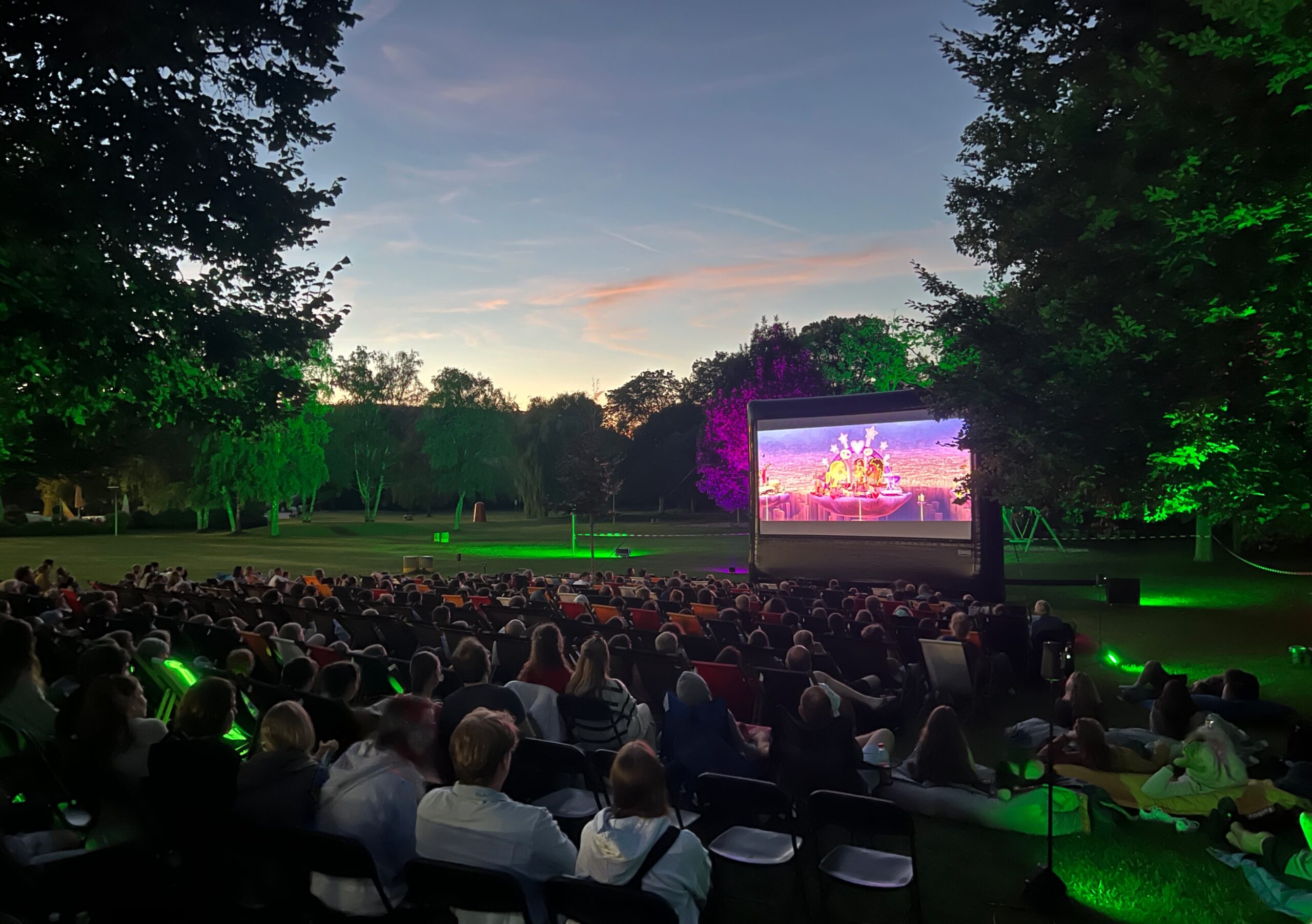 Wir veranstalteten in den Jahren 2016 und 2017 für die WVV- Würzburger Bäder GmbH das Open-Air-Kino Dallenflimmern. Hier traten wir als technischer Partner auf und kümmerten uns um die komplette Organisation und Durchführung des Events. Das Ganze fand im Rahmen der Jubiläumsfeier des Dallenbergbades statt. Die Veranstaltung war für 300 Besucher pro Abend ausgelegt, welche Tickets im Vorverkauf oder an der Abendkasse erwerben konnten. Der Platz wurde von uns mit Liegestühlen bestuhlt, da diese perfekt zum Schwimmbad und Sommerfeeling passten.